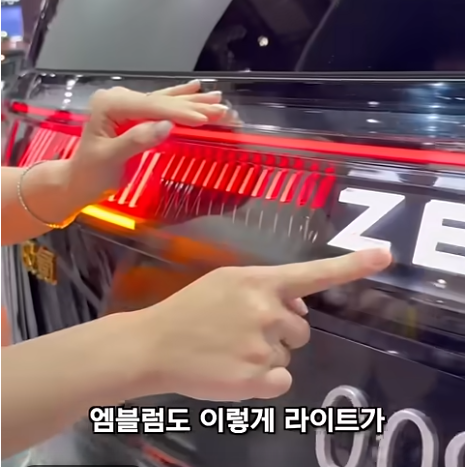 지커 009의 첫인상은 그야말로 '강렬함' 그 자체입니다. 전기차답게 전면 그릴이 매끄럽게 막혀 있지만, 그 위를 수놓은 화려한 라이트들이 끊임없이 깜빡이며 존재감을 드러내죠. 특히 눈길을 사로잡는 건 바로 '불판 휠'입니다. 마이바흐에서나 볼 법한 고급스러운 디자인의 휠이 장착되어 있어 멀리서 봐도 범상치 않은 아우라를 뿜어냅니다. 여기에 루프라인과 도어 핸들, C필러 곳곳에 적용된 골드 포인트는 이 차가 지향하는 럭셔리함이 어느 정도인지 잘 보여줍니다.