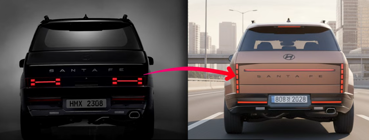 - 산타페 페이스리프트: 디자인 호불호가 있었던 현행 모델에서 H자 모양의 DRL을 세로형으로 배치하여 더욱 대형 SUV다운 웅장한 느낌을 주며, 후면 램프 역시 세로형으로 통일됩니다. 인테리어는 PlayOS가 적용되어 상품성을 크게 높였습니다. 심지어 '전기차+엔진 발전기' 방식인 ERV 모델에 대한 소문도 돌고 있어 주목됩니다.