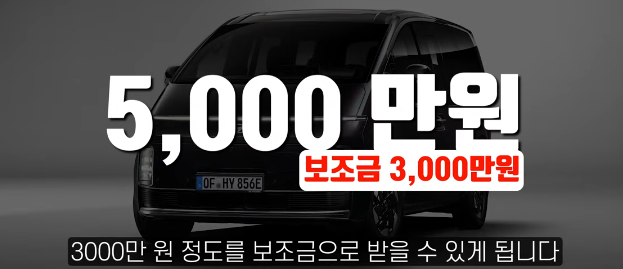 - 스타리아 일렉트릭은 올해 신설된 소형 전기 승합차 보조금(국고 최대 1,500만 원)을 받을 수 있는 모델입니다. 이 보조금과 지자체 보조금을 합치면 차량 가격이 2천만 원대까지 낮아질 수 있어 매우 높은 가격 경쟁력을 갖추게 됩니다.