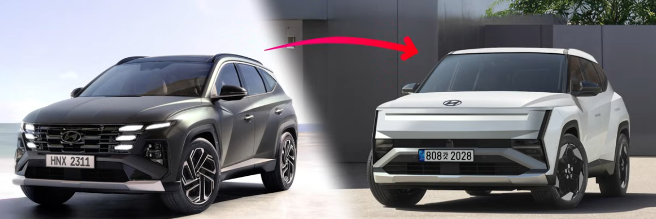 - 투싼(NX5) 풀체인지: 현대의 글로벌 베스트셀링 SUV인 투싼이 5세대로 풀체인지됩니다. 기존의 복잡하고 화려한 디자인을 버리고 경쟁 모델처럼 깔끔하고 미래적인 디자인으로 탈바꿈했습니다. 전면과 후면 모두 세로형 램프가 적용되어 아반떼와 패밀리룩을 공유합니다. 역시 16:9 PlayOS 디스플레이가 적용되며, 기존 7단 DCT가 삭제되고 8단 자동변속기가 들어옵니다. 플러그인 하이브리드(PHEV) 모델은 엔진 시동 없이 100km 주행을 목표로 개발 중이며, 사실상 일상용 전기차와 다름없는 스펙을 갖춥니다.