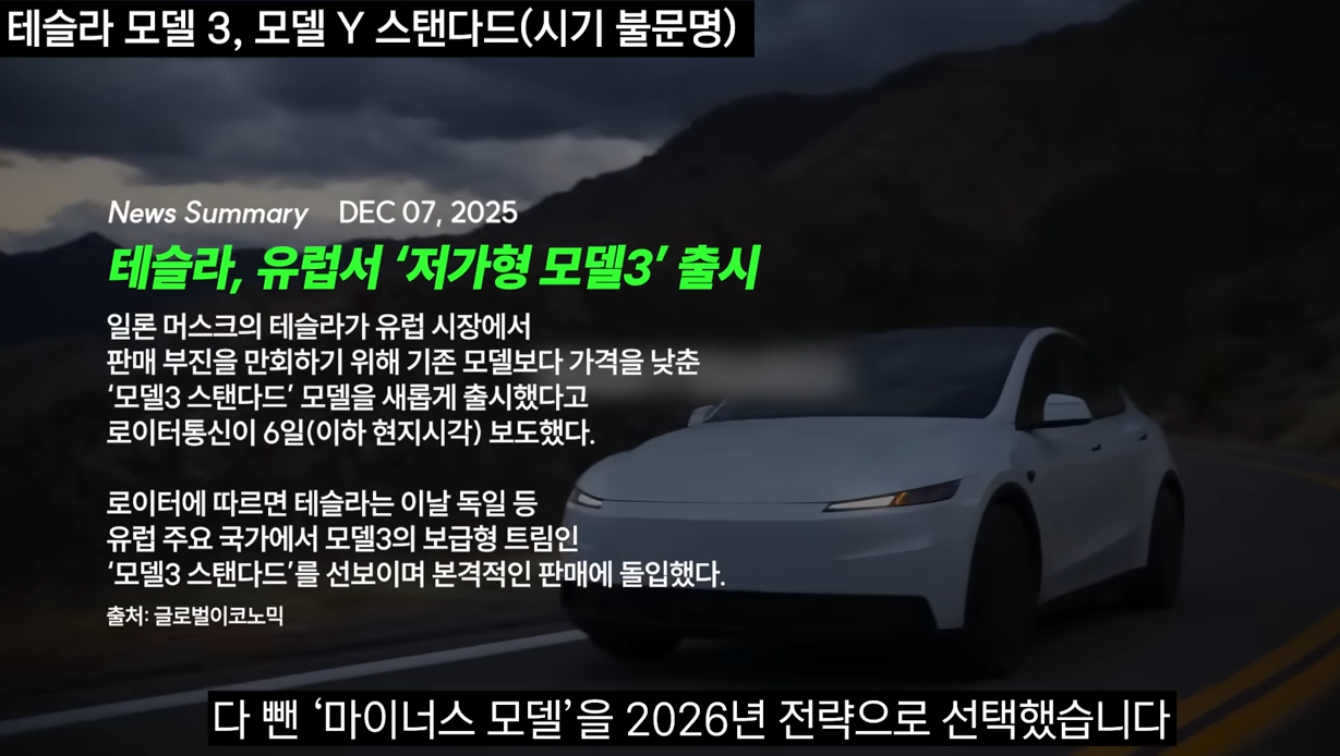 테슬라는 2026년, 모델 2(반값 전기차) 대신 극단적인 두 가지 모델을 선보입니다.