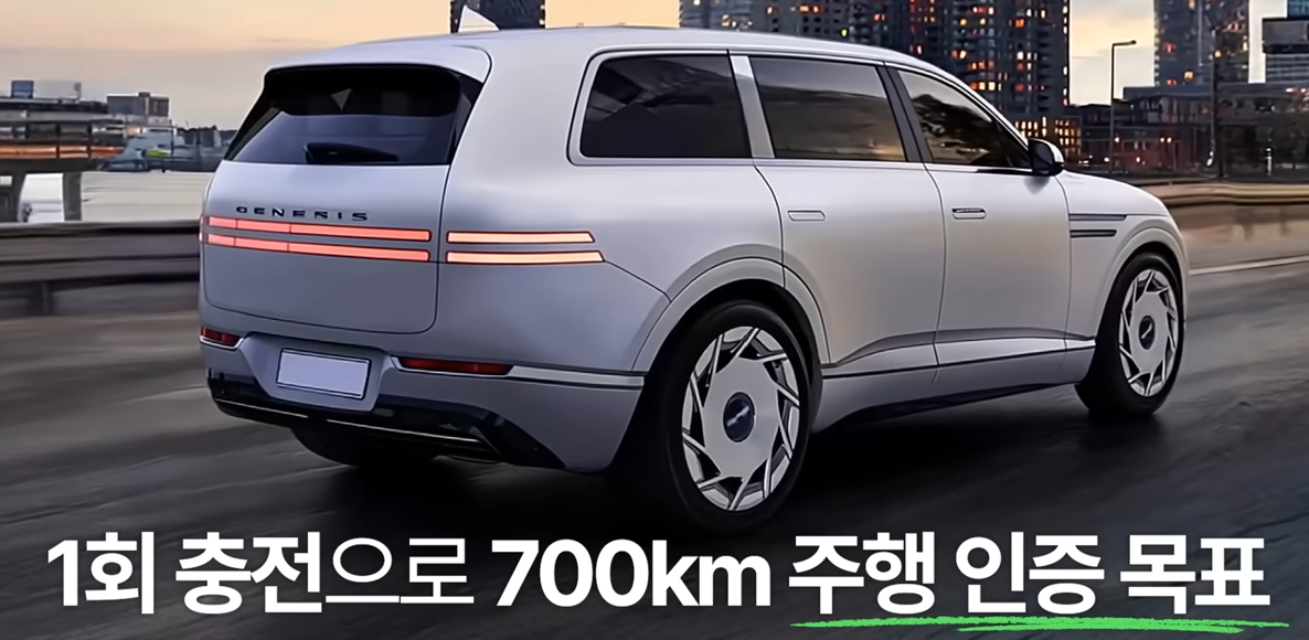 2026년 상반기 출시가 유력한 GV90은 롤스로이스나 벤틀리 SUV 시장을 겨냥하는 압도적인 고급감의 모델입니다. 차세대 EM 플랫폼을 적용해 113kWh급 이상의 초대형 배터리를 탑재하고, 1회 충전 700km 이상의 주행거리를 목표로 합니다. 양문형 개방 방식인 '코치 도어' 루머까지 돌고 있으며, 예상 가격은 국산차 최초로 1억 5천만 원에서 시작해 풀옵션은 2억 원에 육박할 것으로 보입니다.
